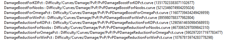 Many of these curves are dummies with placeholder values, but some of them have meaningful multipliers. For example, DamageBoostForWinPct uses the PvPRecentWinLossRatio property that is calculated based on recent PvP performance. I will leave implementing these boosts to Crypto, because powers are his field of work.
