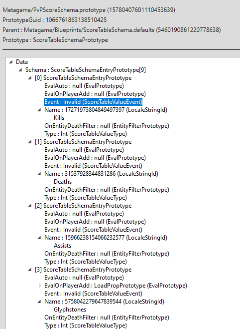 There is also a number of score statistics defined in the PvPScoreEventHandlerPrototype that need to be tracked to be displayed in a scoreboard. This prototype specifies column indices for a ScoreTableSchema: